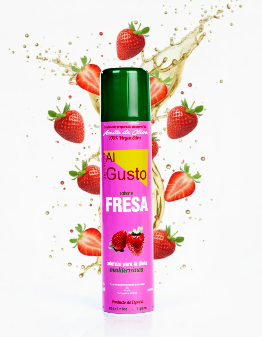 Aceite de oliva virgen extra sabor fresa en aerosol, perfecto para