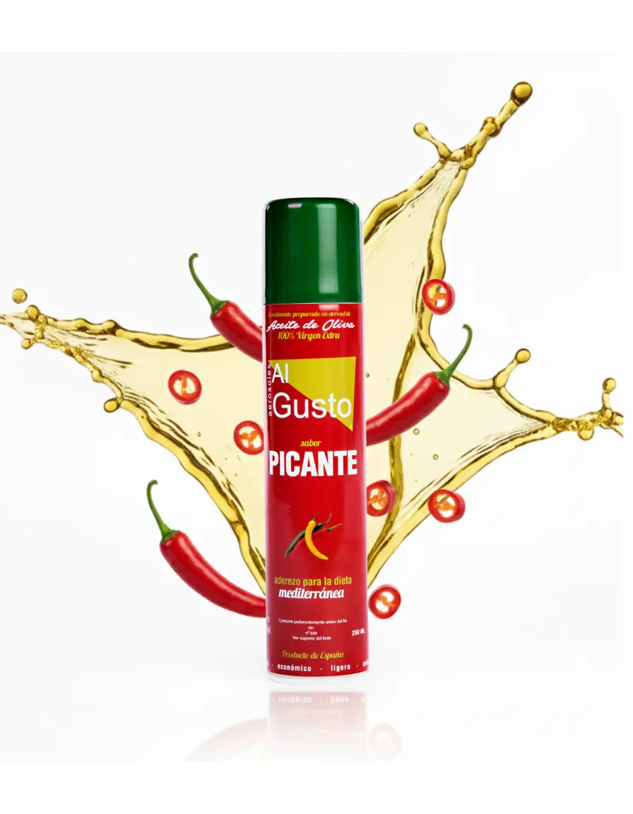 Aceite de oliva virgen extra sabor picante en aerosol, ideal para aportar un